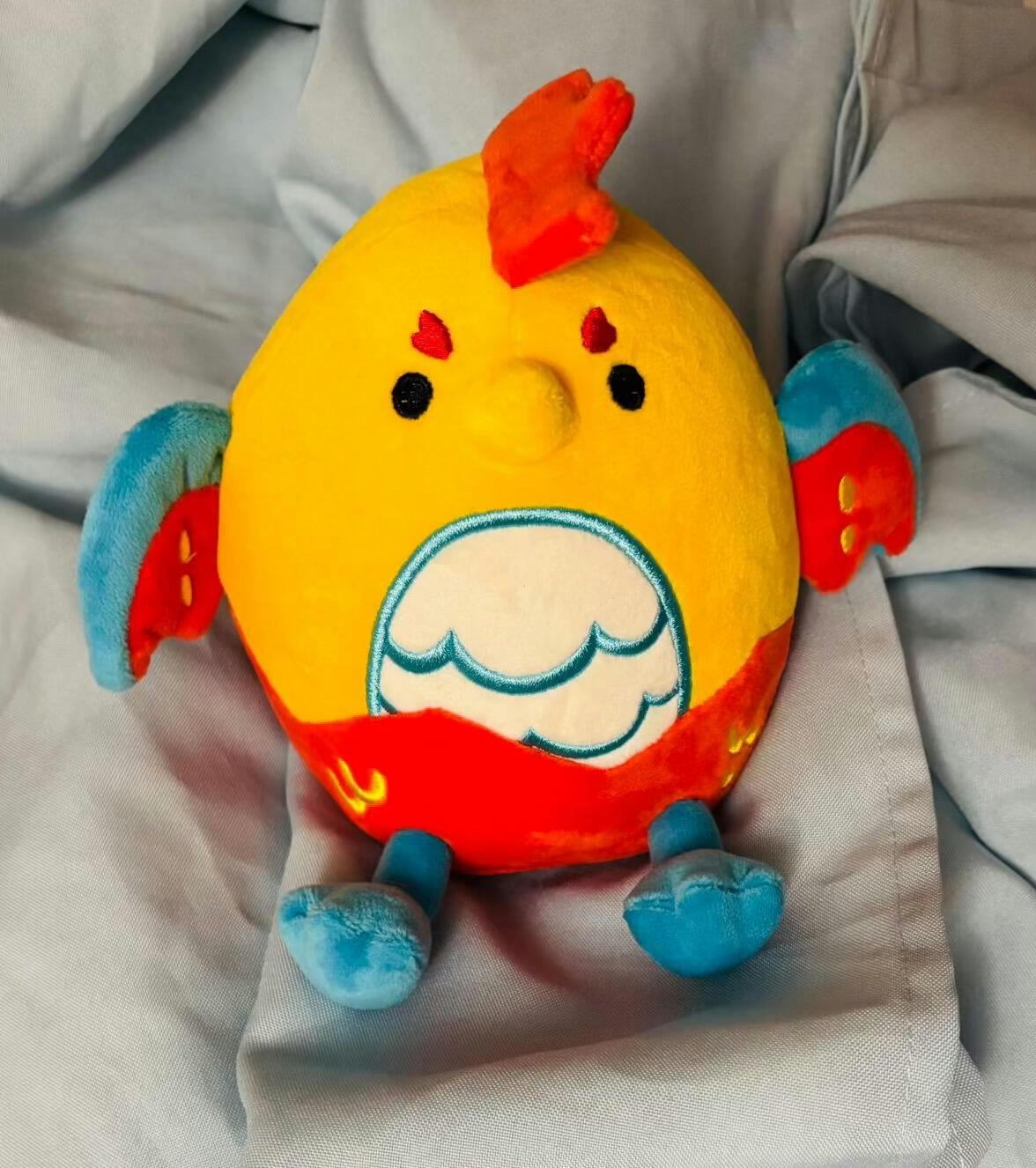 The plushie is 5 inches tall, features embroidered details and the cutest little talons! This might just be the roundest plush ever, and it is SO cozy and huggable. You're going to love squeezing this lil' guy. Plus, the little feetsies dangle and are so fun to play with!